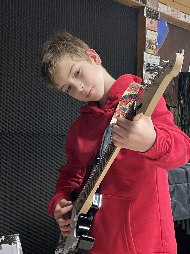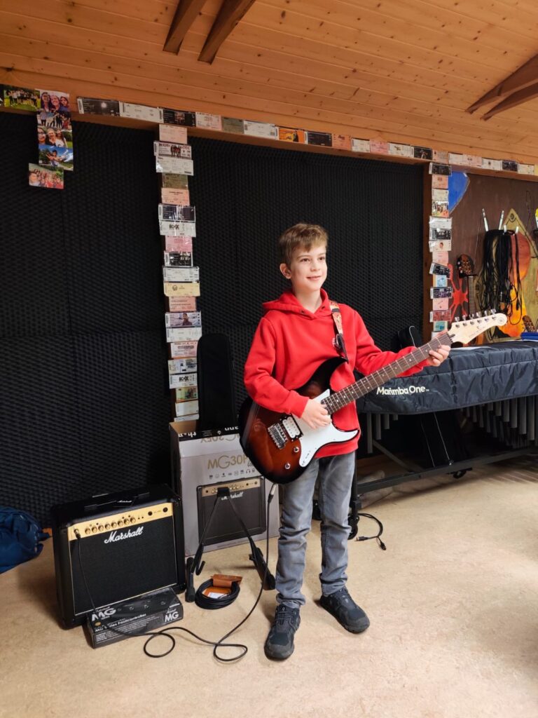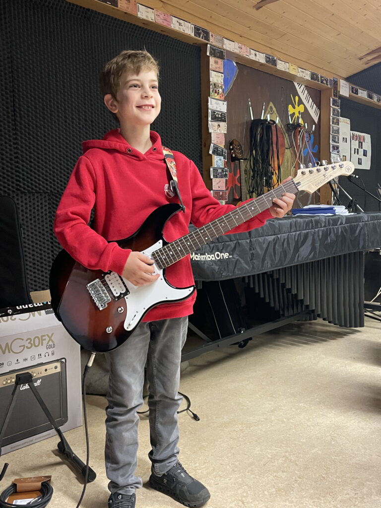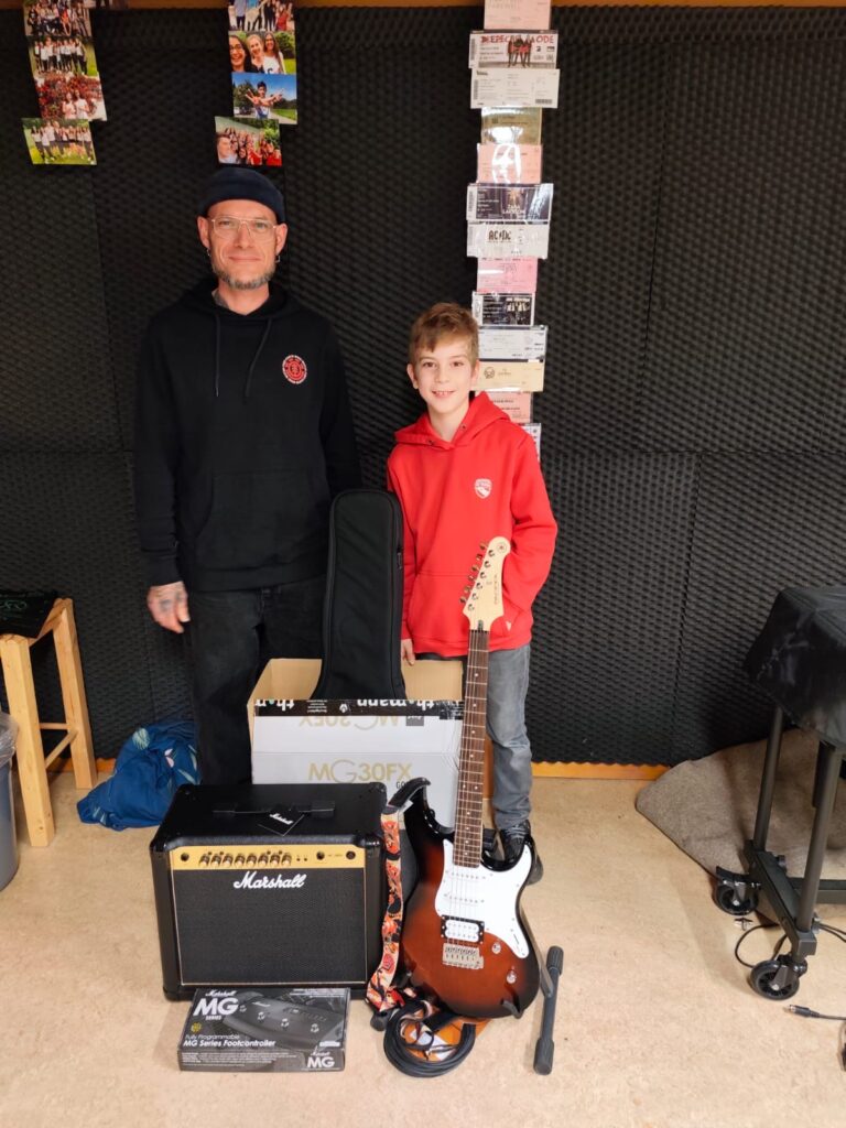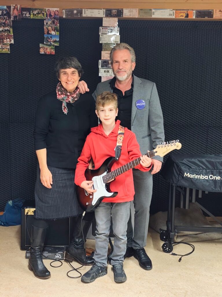 Son professeur de musique lui a offert une chanson personnalisée, suivie d’une prestation du groupe qu’il rejoindra officiellement prochainement. Puis est venu le moment tant attendu : Glen a reçu sa propre guitare électrique, accompagnée de tous les accessoires nécessaires pour jouer et progresser.