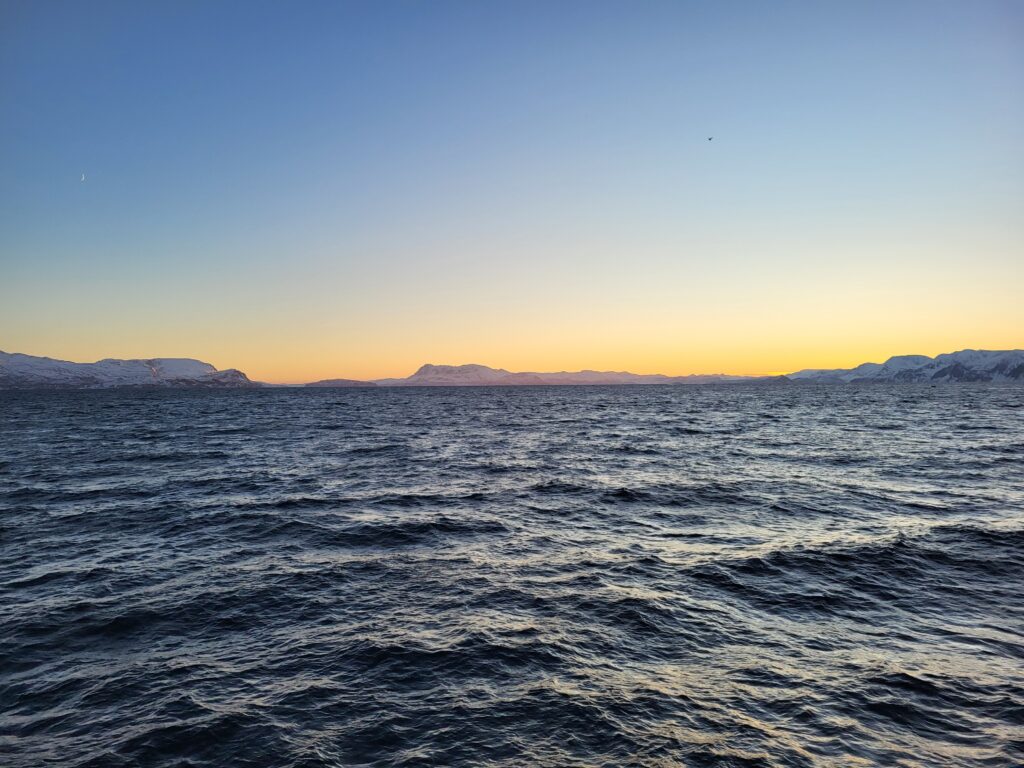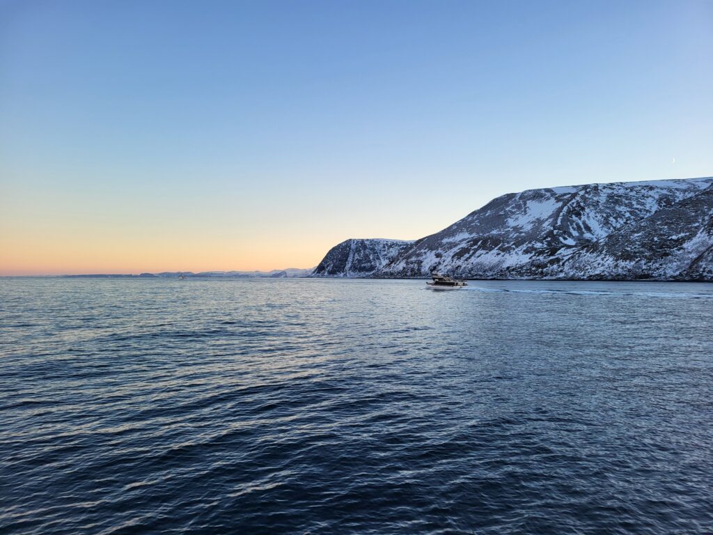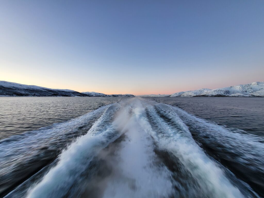 Après trois heures en mer, dans le froid du Grand Nord, le bateau atteint la zone d’observation.