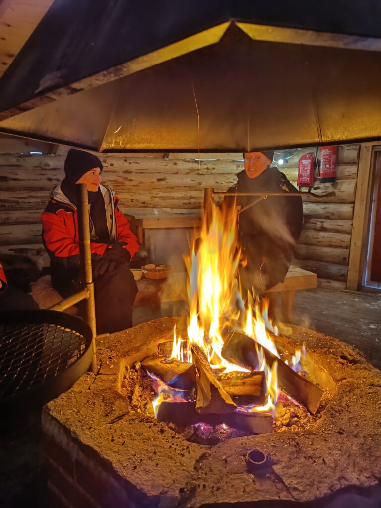 Après la balade, la famille a été invitée dans une tente traditionnelle pour se réchauffer et échanger.